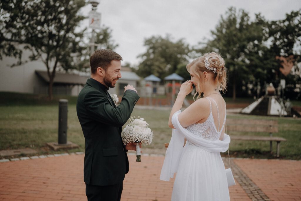 Die Brautpaarbilder waren ein weiteres Highlight. Sie waren ganz auf Mareike und Simon zugeschnitten, voller Humor und Freude – genau wie die beiden selbst. Es war mir wichtig, ihre Persönlichkeit in den Bildern festzuhalten, um diese besonderen Momente für immer zu bewahren.